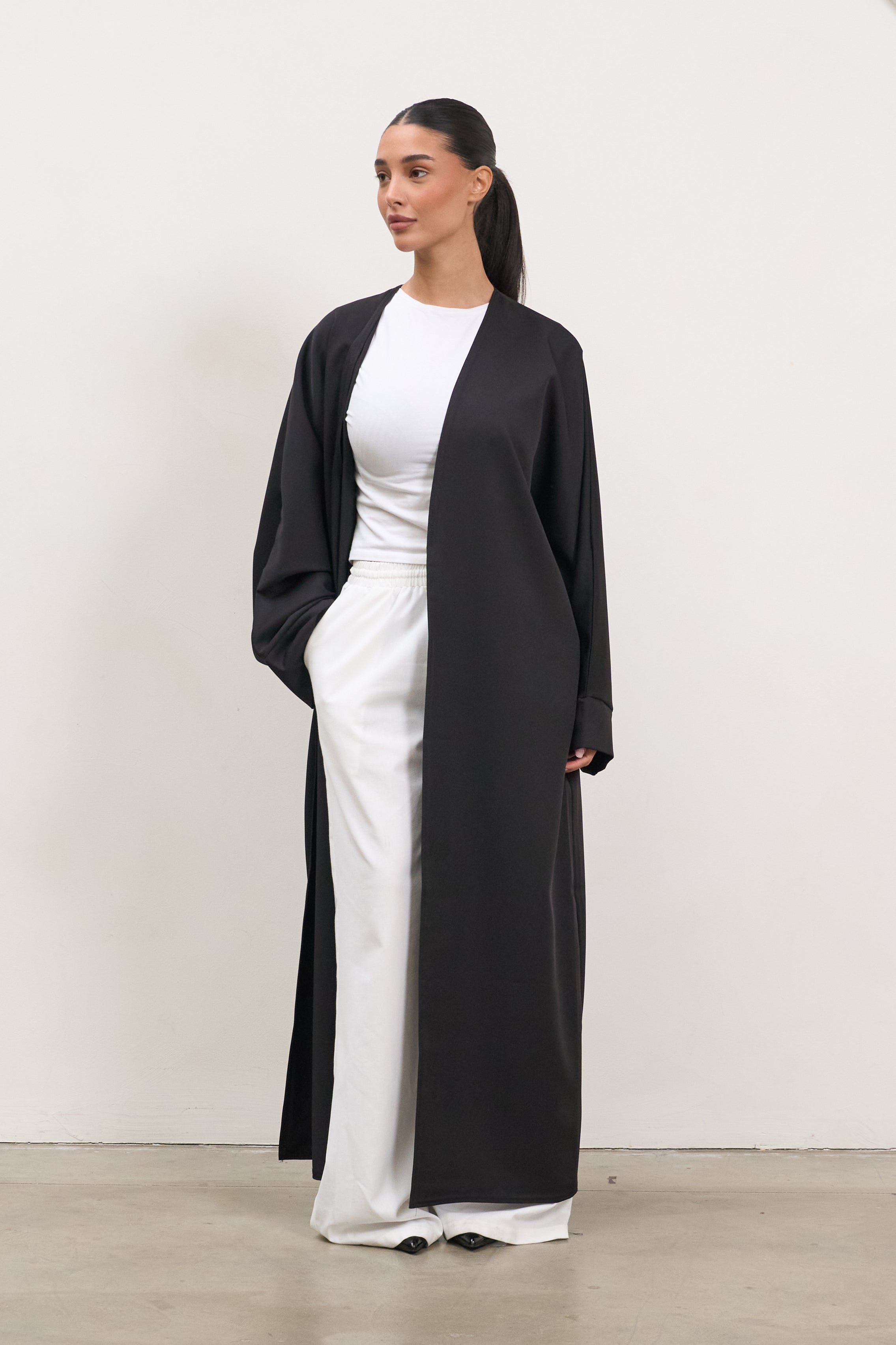 The Essential Oversized Open Abaya in black is the perfect blend of comfort and timeless style. Designed with a relaxed, oversized fit, this abaya drapes beautifully and moves effortlessly with you.