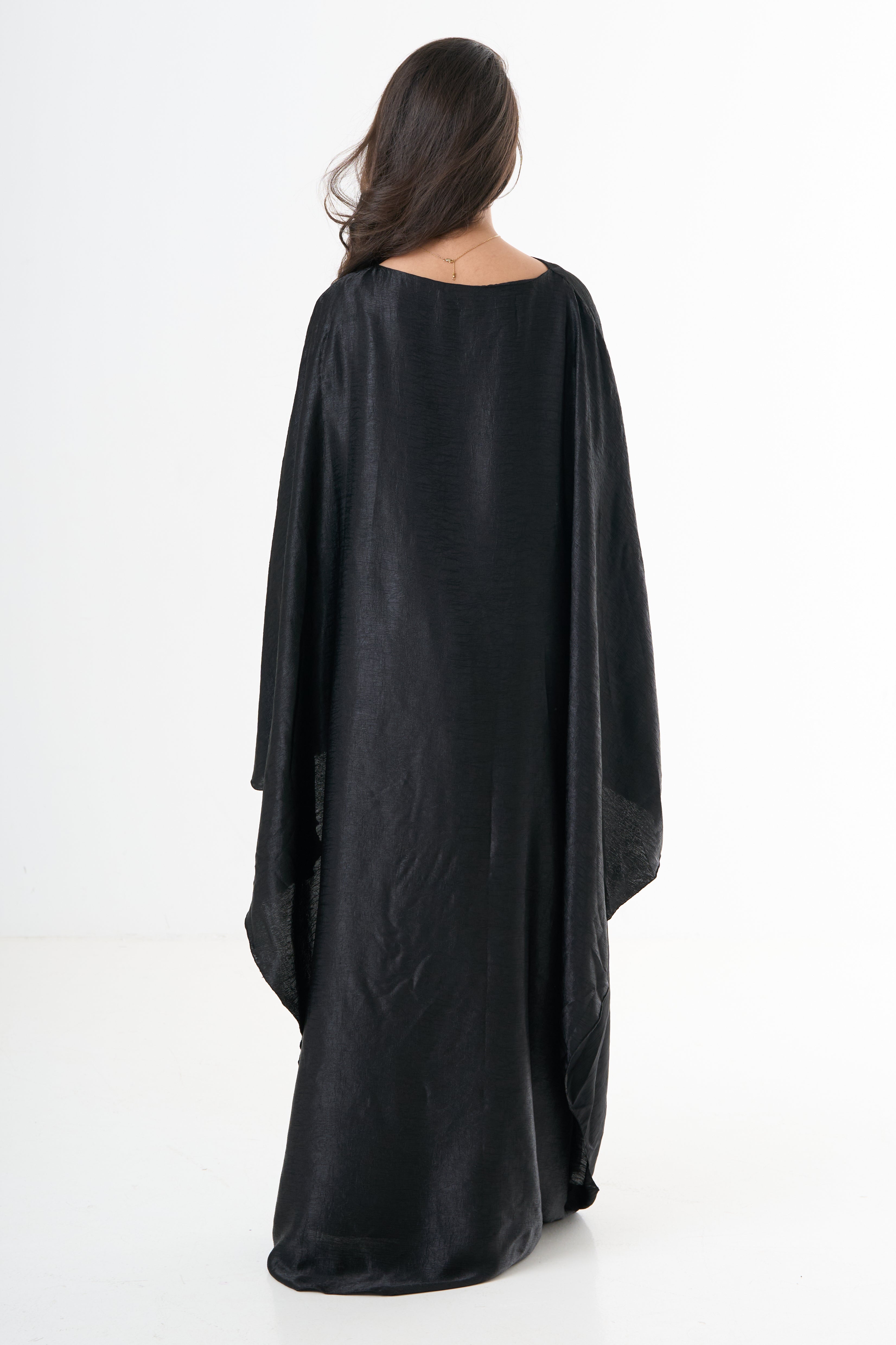 The model is 165 cm tall and wears one size. The dress features adjustable ties at the back, allowing you to tighten it for a more fitted look.