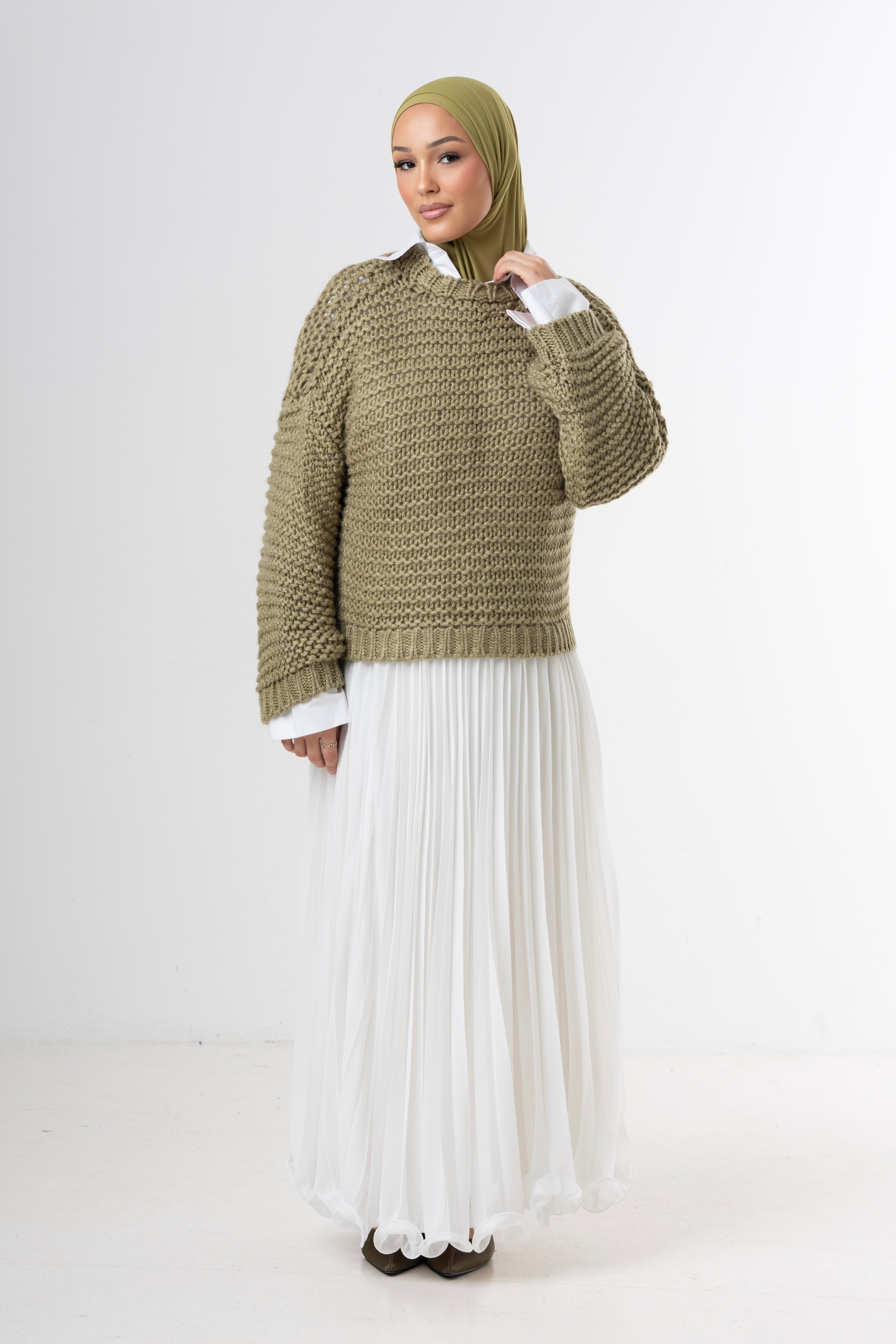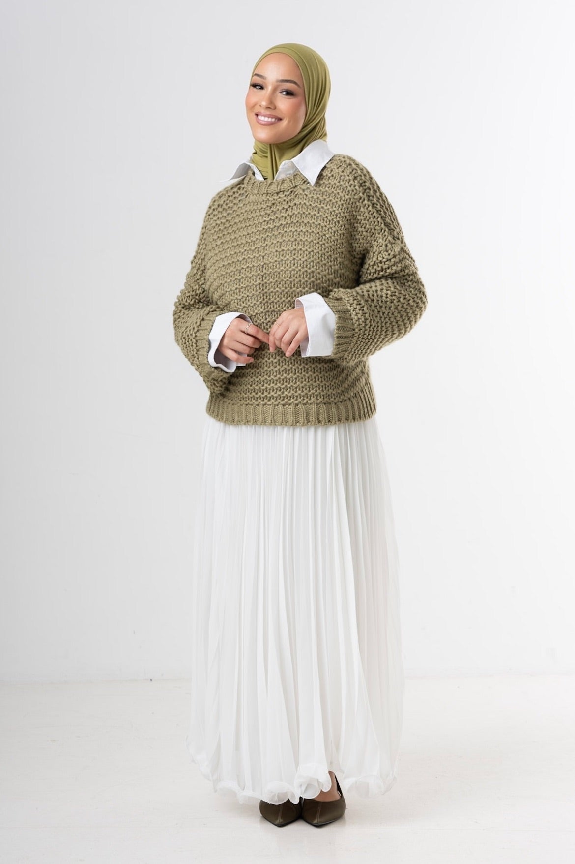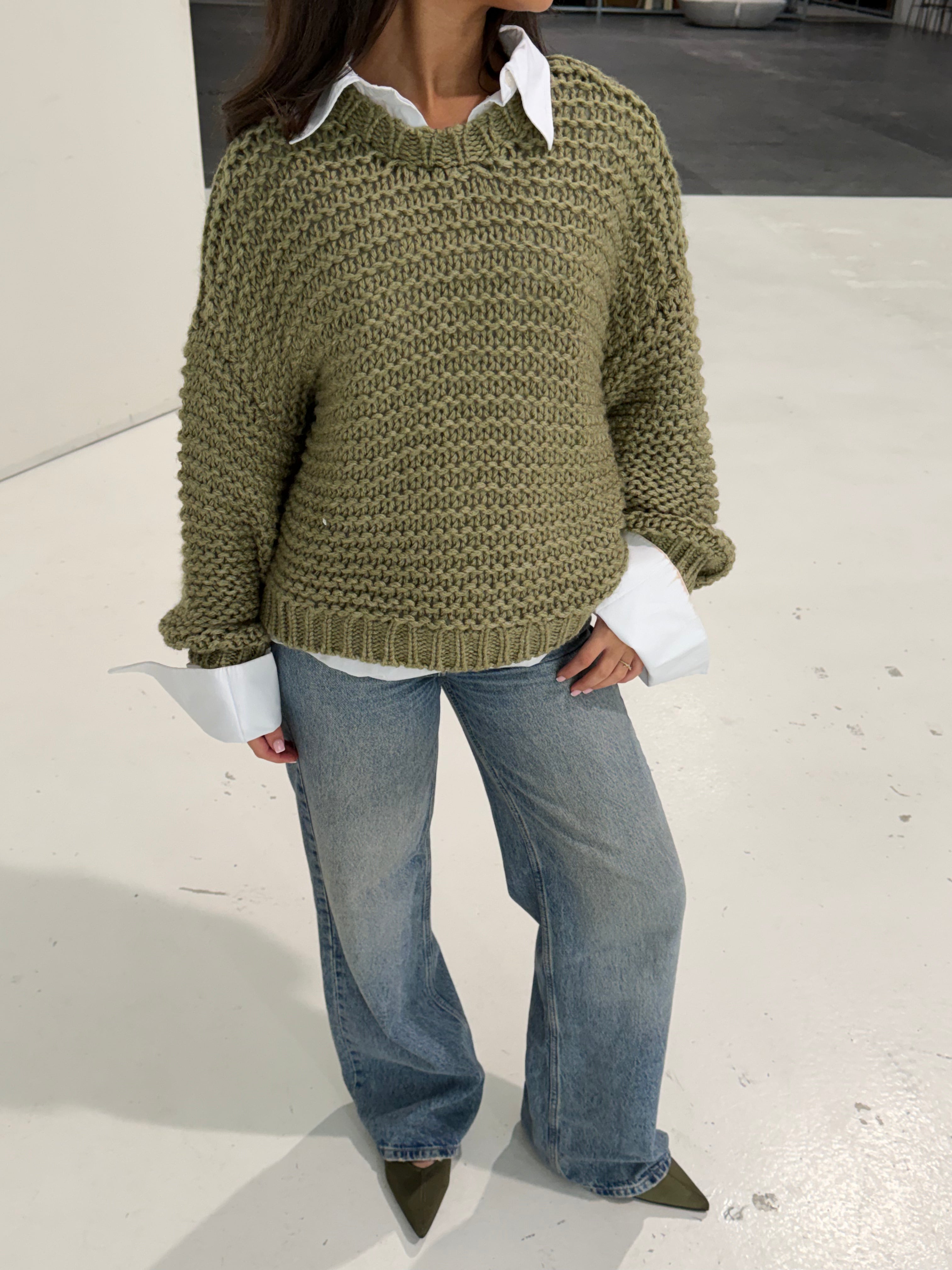 The Matcha Knit Sweater is crafted from a soft, chunky knit fabric with a relaxed and effortless fit. Designed in a warm green shade, this sweater features a rich textured stitch that adds depth and character to any outfit.