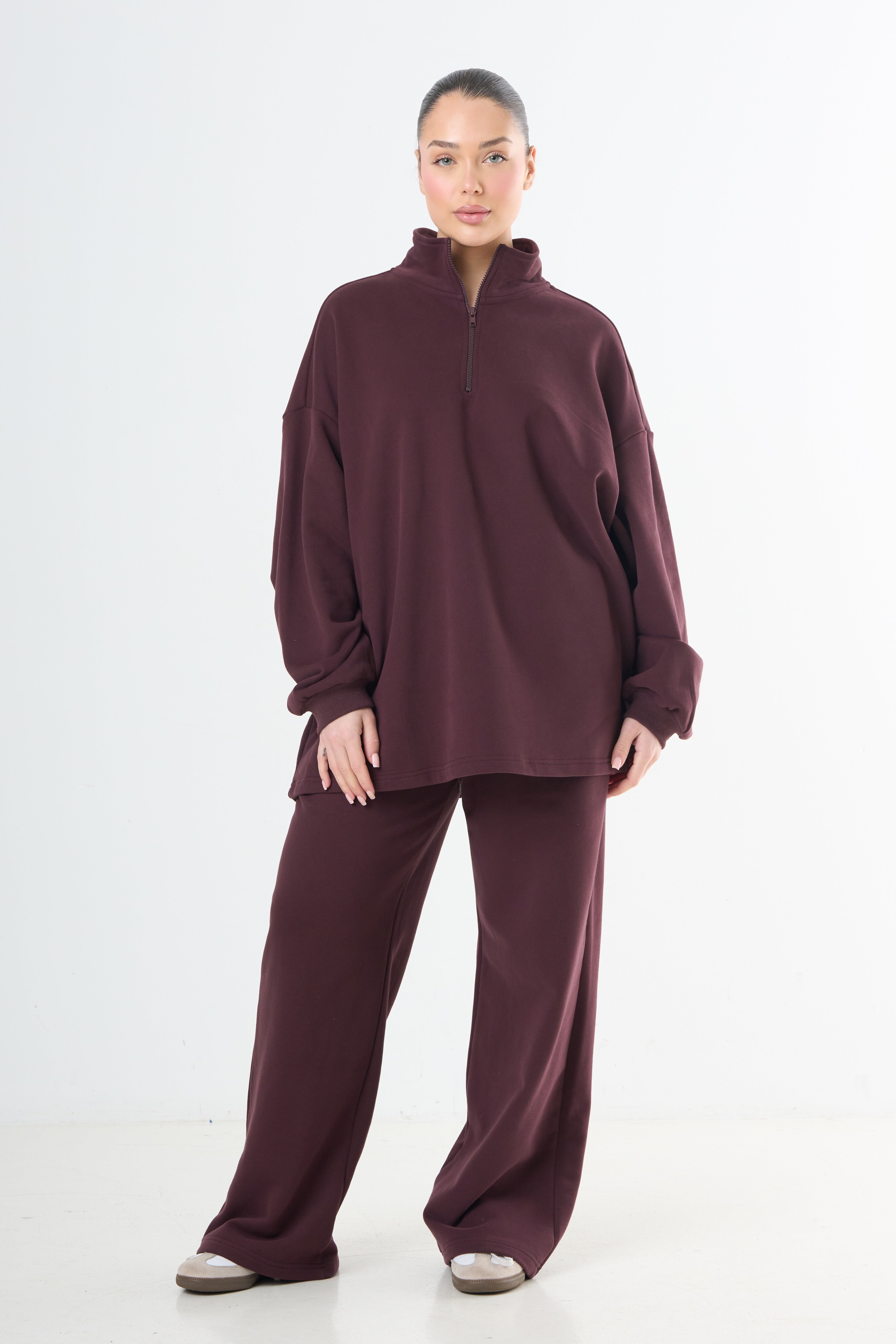 One size with an oversized fit that prioritizes comfort and ease of movement. Crafted from soft, quality fabric, this tracksuit delivers a relaxed silhouette perfect for everyday wear.