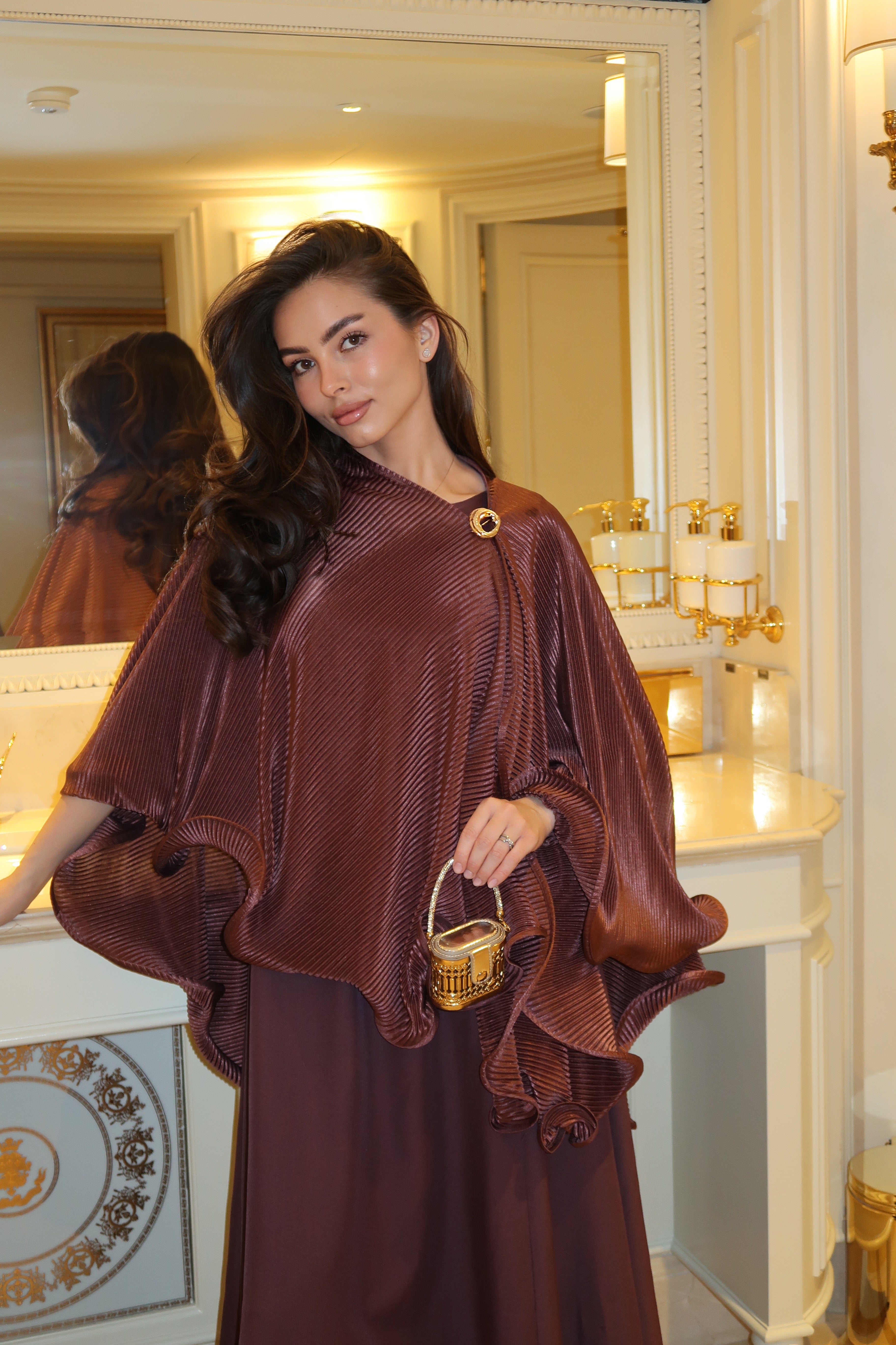 The ruffle poncho is a standout layering piece designed to add movement and elegance to any look. featuring soft, cascading ruffles and a relaxed silhouette, this poncho drapes beautifully over the body for an effortless yet refined finish.